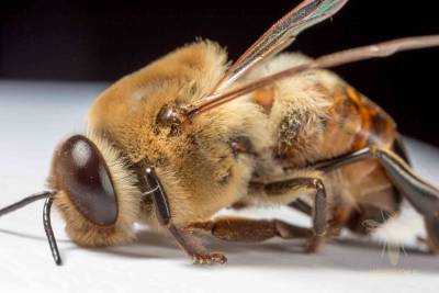 The drone bees are the only male bees of a colony of honey bees. They can be easily identified from the workers, first of all by the pair of large bulging compound eyes. Furthermore, they are larger than the workers yet smaller than the queen. Also, there are fewer males in the hive in comparison to the workers and are rarely seen outside of the hive except in mating season where they seek out a young queen to mate with. As many as 20 or more males will mate with a virgin queen during her nuptial flight when he will perish in the act.